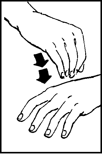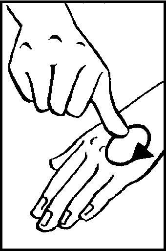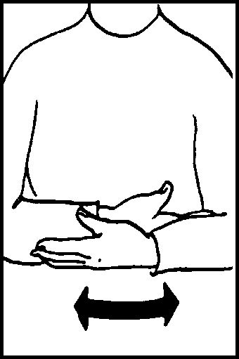 Form fist with thumb extended. Move thumb tip in small circle on back of relaxed left hand.