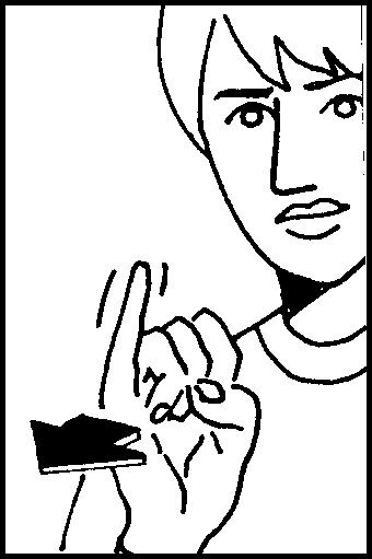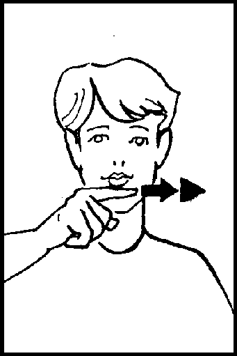 Extend right index finger. Rub side of finger forwards and backwards across the chin, twice.