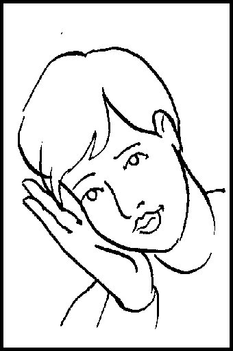 Place open right hand on side of head. Tilt head slightly.