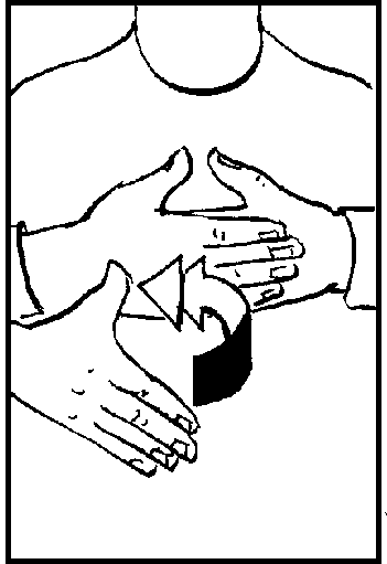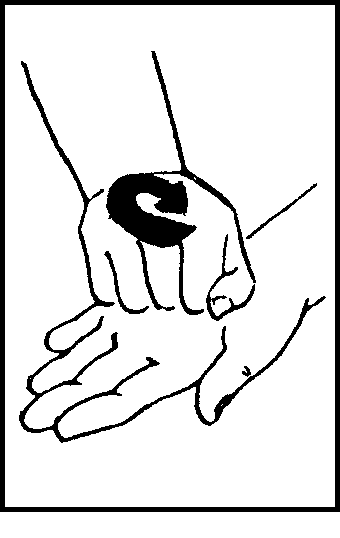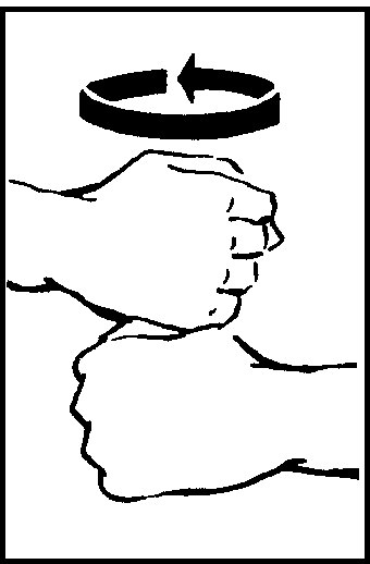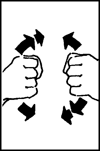 Form fists with both hands. Move right fist in small anti-clockwise circles above left fist.