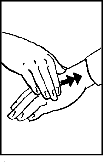 Form right fist, palm down. Move in clockwise circles above left palm.