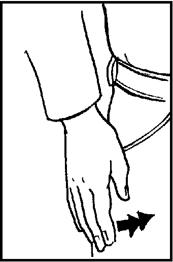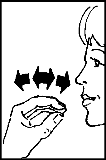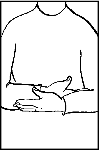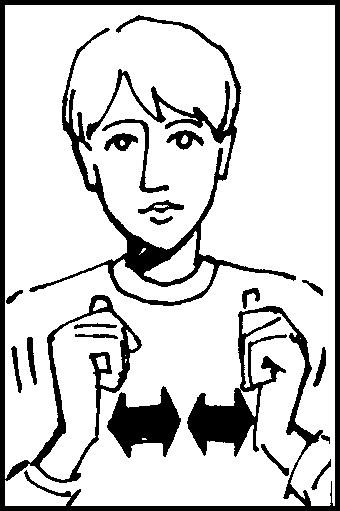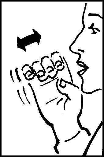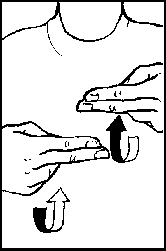 Form fists with both hands. Place at sides of chest. Move formation in quick, short sideways movements, several times.