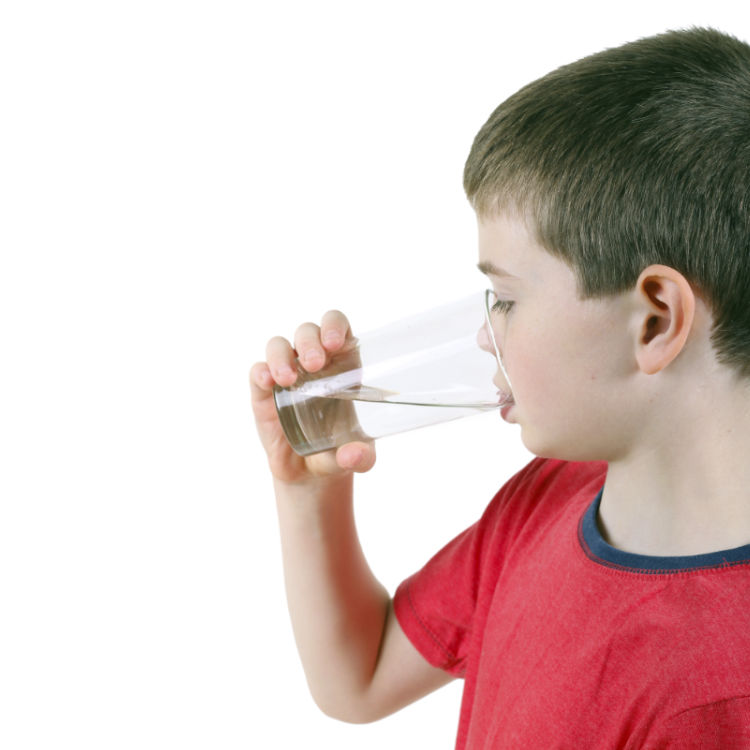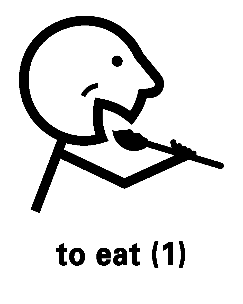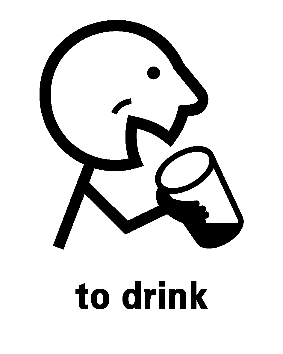 Form right handed "C", palm left, blade down. Tilt up and forward as if drinking.