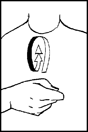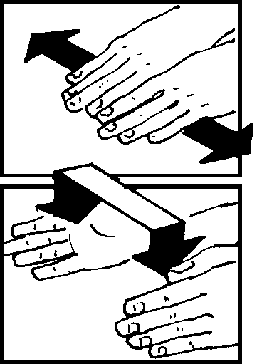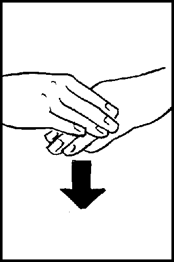 Place open right hand,palm down, on back of open left hand. Move formation down, slightly.