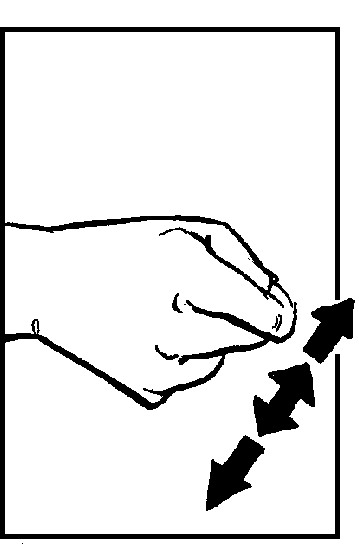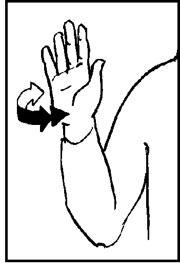 Hold right hand, fingers spread, palm forward and bent at elbow. Rock wrist slightly.