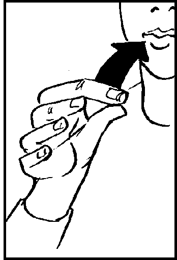 Place right index finger onto ball of right thumb, other fingers extend and slightly spread. Move formation to mouth.