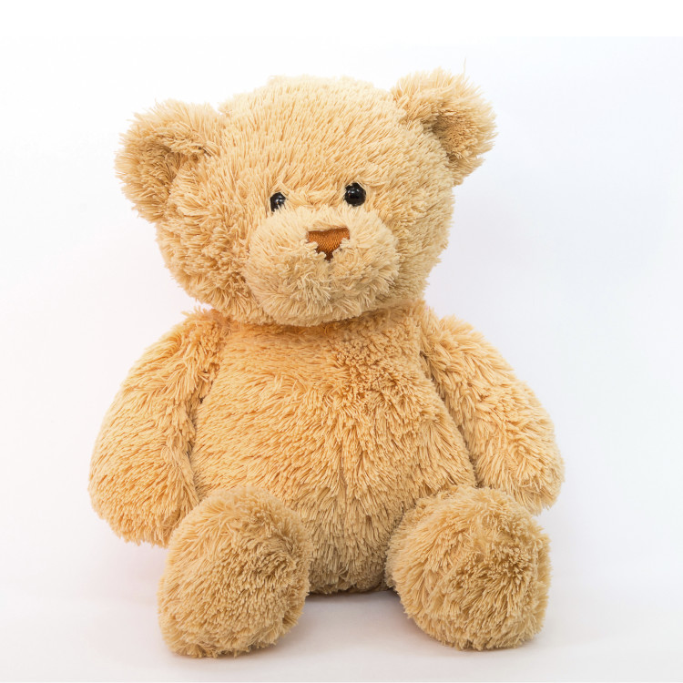 Form "C" with index fingers and thumbs of both hands. Place fingertips on head with thumbs on temples to represent the ears of teddy.