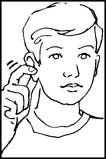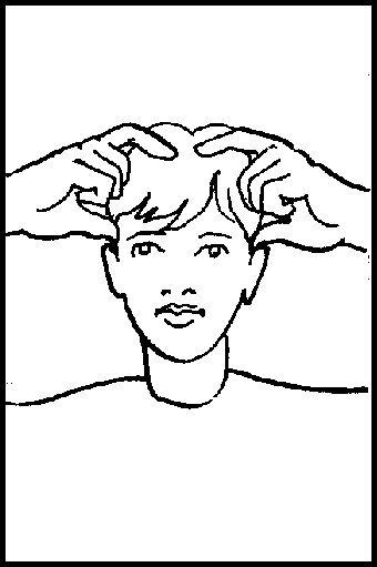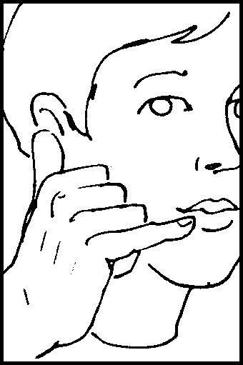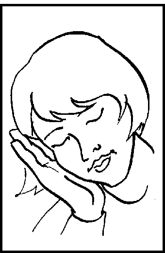 Place open right hand on side of head. Close eyes. Tilt head slightly.