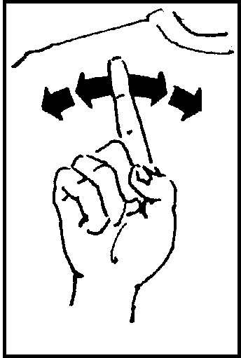Extend right index finger, palm forward. Move formation from side to side, twice. Use placement and directionality.