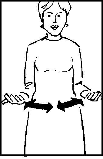 Form right fist, as if grasping a spoon. Shake formation back and forth.