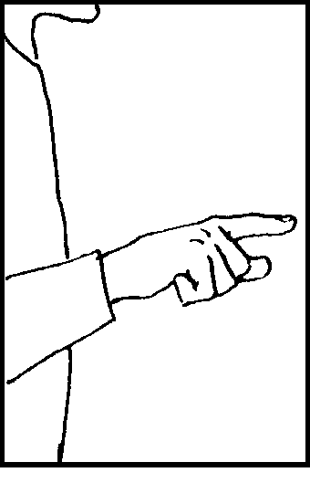 Extend right index finger. Point forward or toward person concerned. Use directionality.